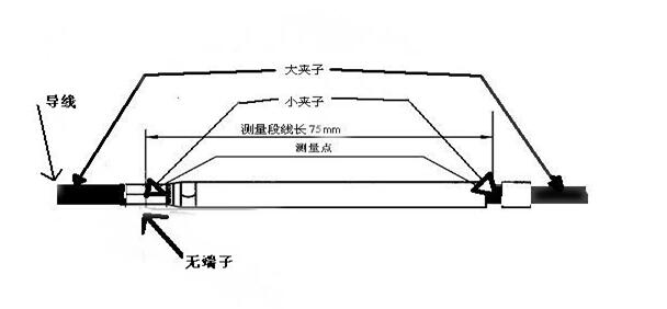 如上示兩圖中,圖1導線首端帶有端子,測量75mm長帶端子導線的兩端壓降,記錄數(shù)據(jù)備用;圖2中導線不帶端子,直接測量75mm長導線的兩端壓降,記錄數(shù)據(jù);,用圖1中測得的壓降減去圖2中測得的壓降即為被測端子的壓降。