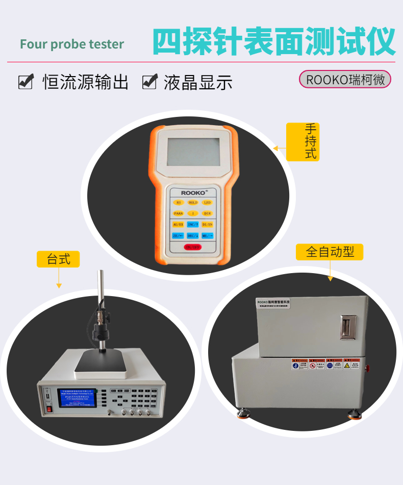 2.硅晶塊、晶片電阻率及擴散層、外延層、ITO導電箔膜、導電橡膠等材料方塊電阻 半導體材料/晶圓、太陽能電池、電子元器件,導電薄膜(ITO導電膜玻璃等),金屬膜,導電漆膜,蒸發鋁膜,PCB銅箔膜,