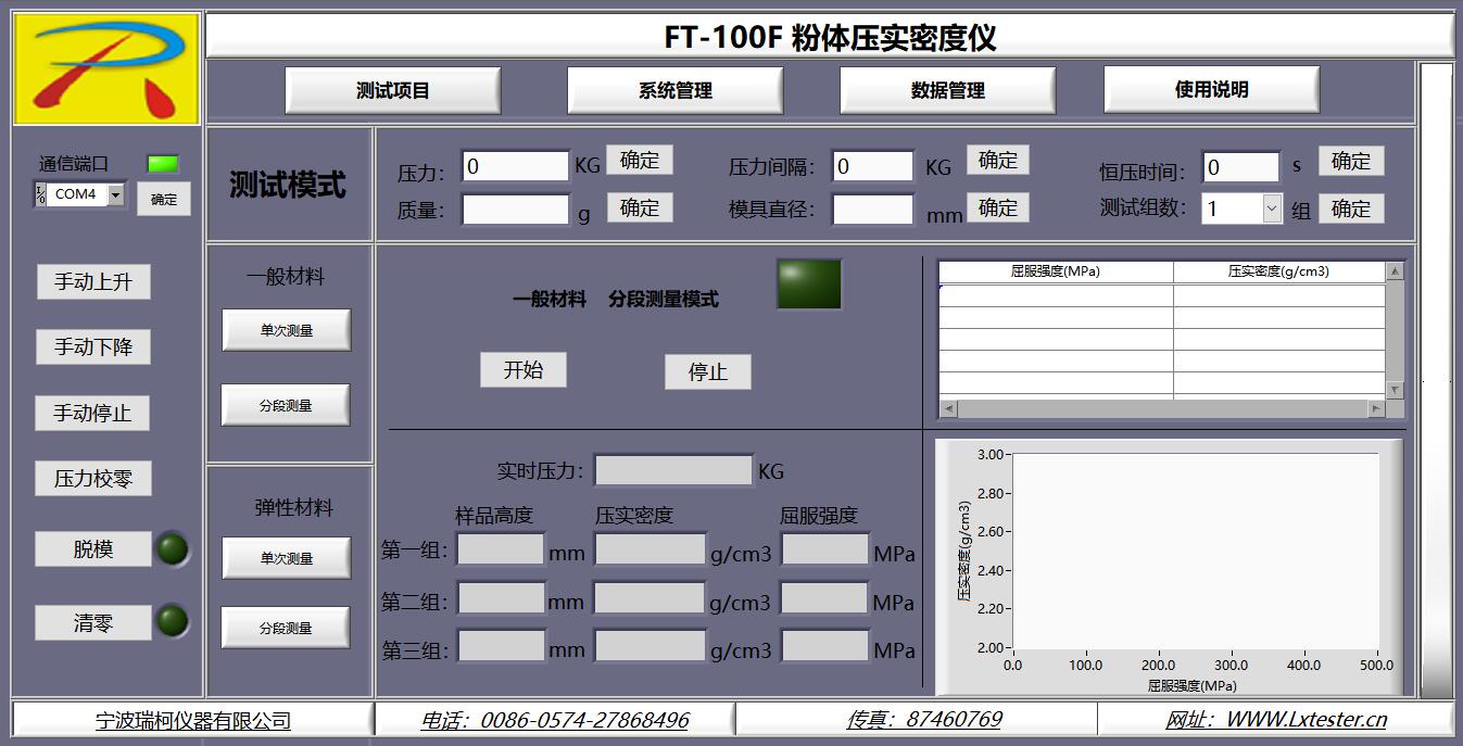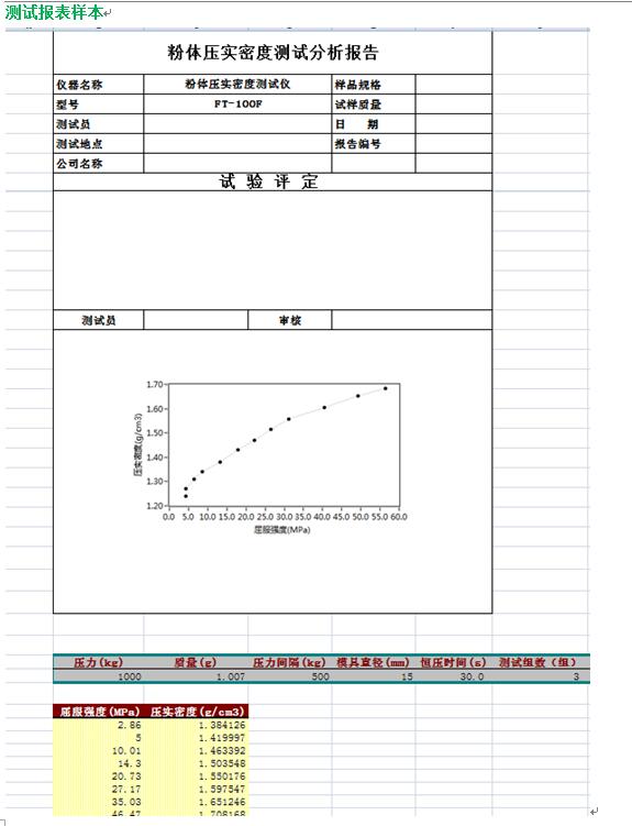 8. PC軟件可以獲得應力、粉體密度、時間、粉體屈服強度關系;過程數據的分析和曲線圖譜.
